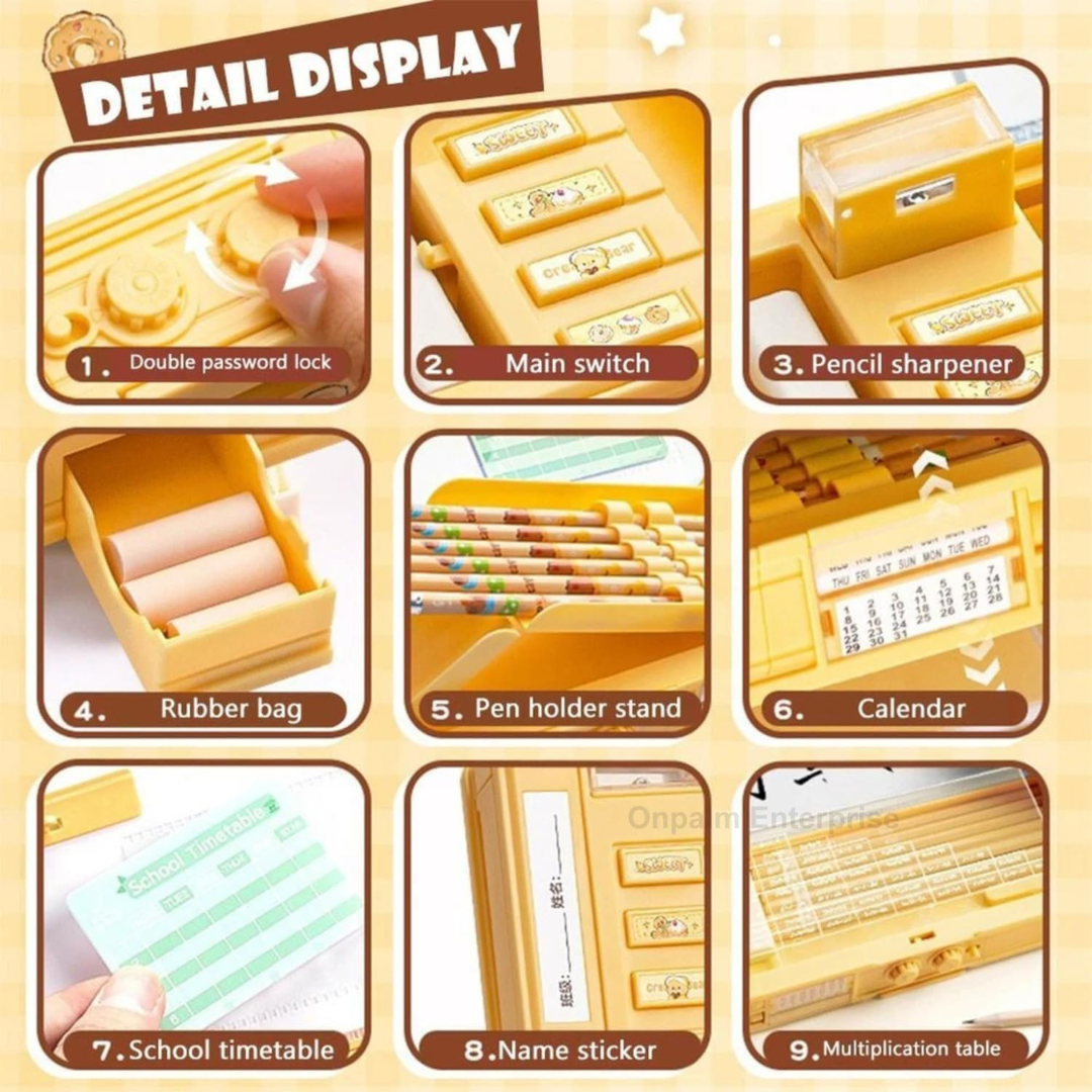 ✔️Pop-up slots for built-in sharpener, Eraser and additional stationery