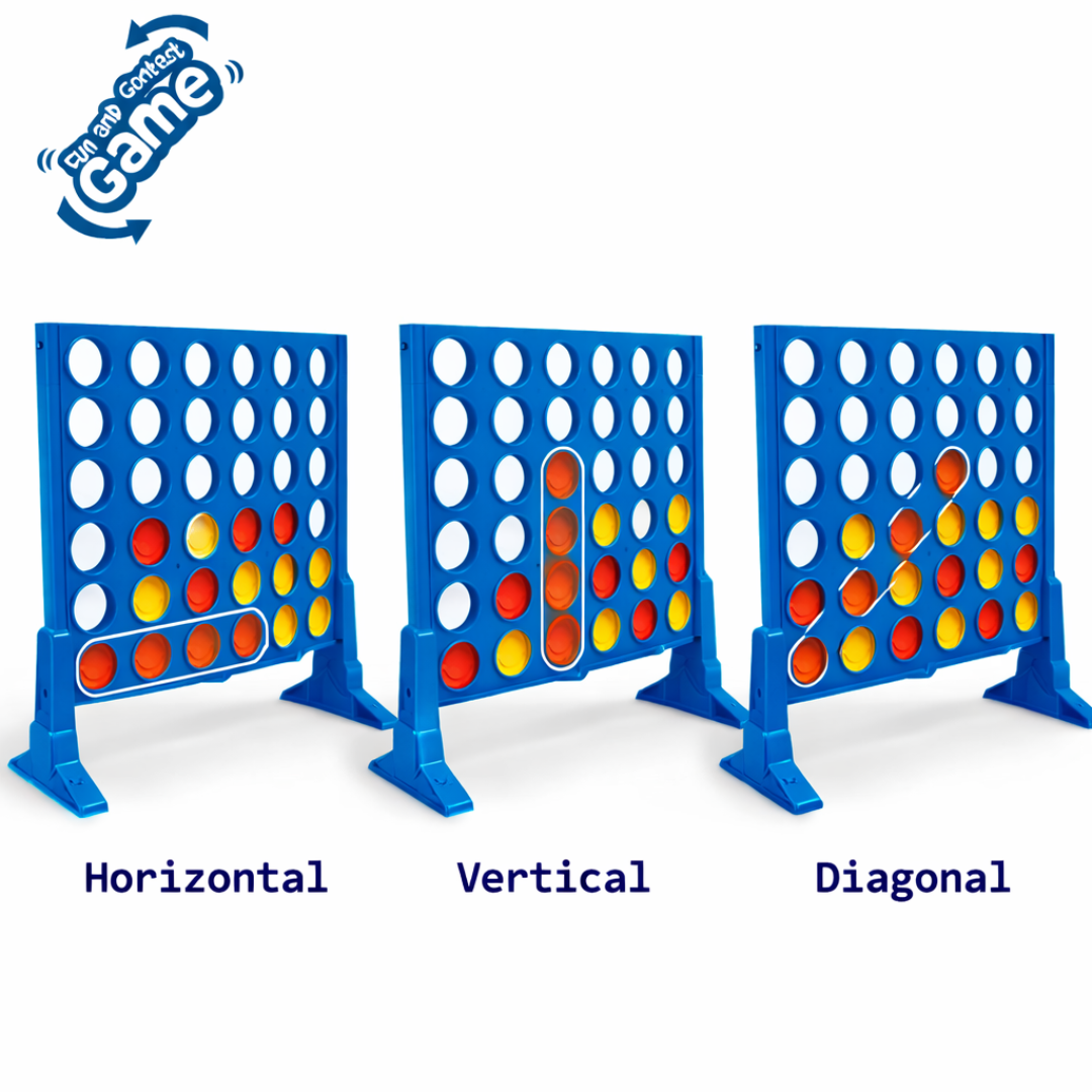 • Connect four discs of the same colour horizontally, vertically, or diagonally to win