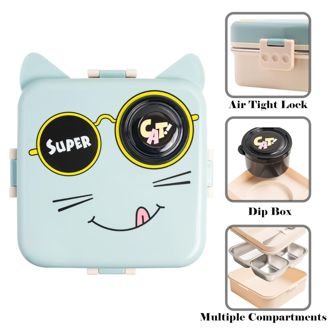 Super Cute Cat Lunch Box | FOODDICT Premium collection | Spacious 6 Compartment | Stainless Steel Tiffin | Secure Lock and Leak-proof