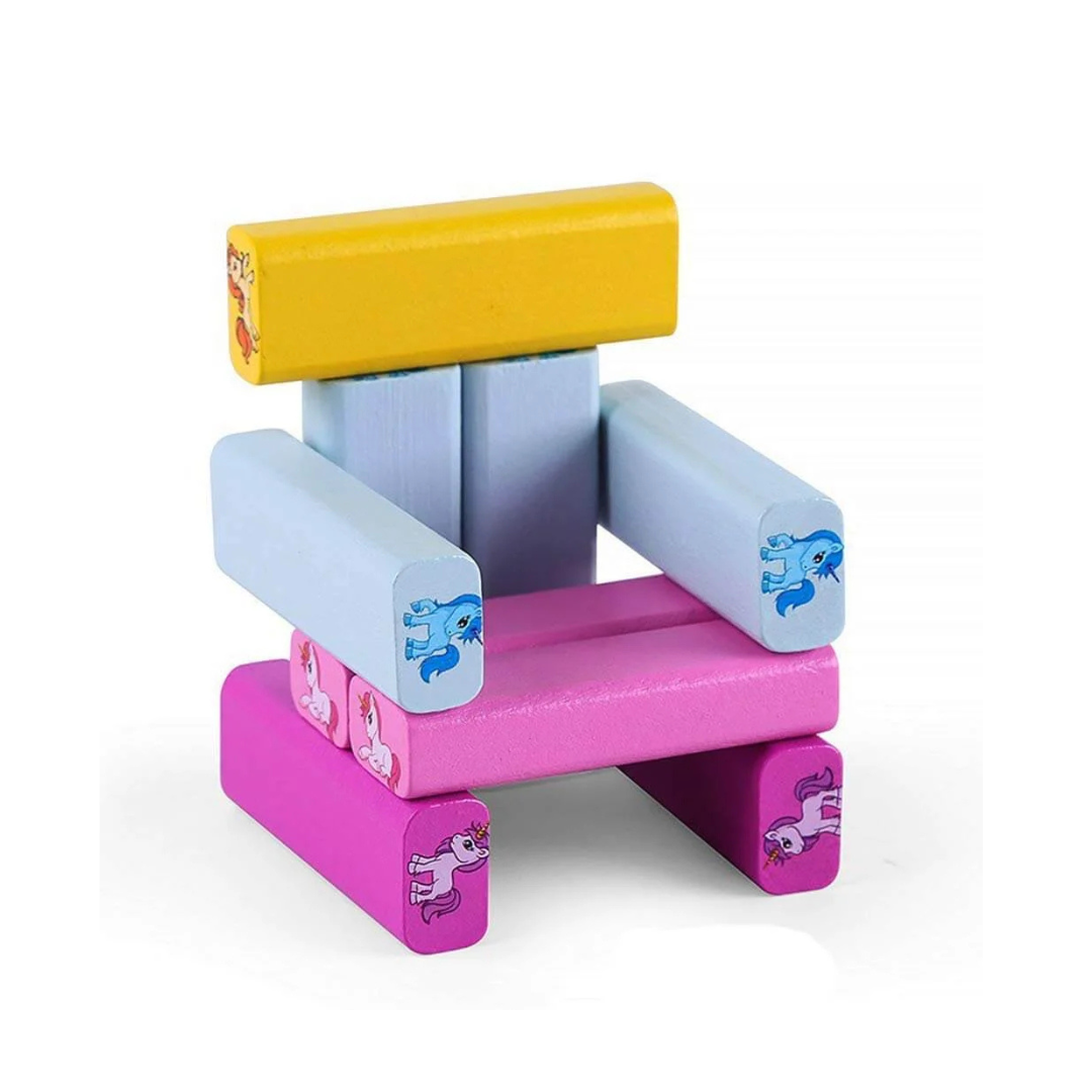 Unicorn Wooden Jenga Stacking Tower | 54 Pcs Educational Blocks | Kids Skill-Building Toy | Age 6+